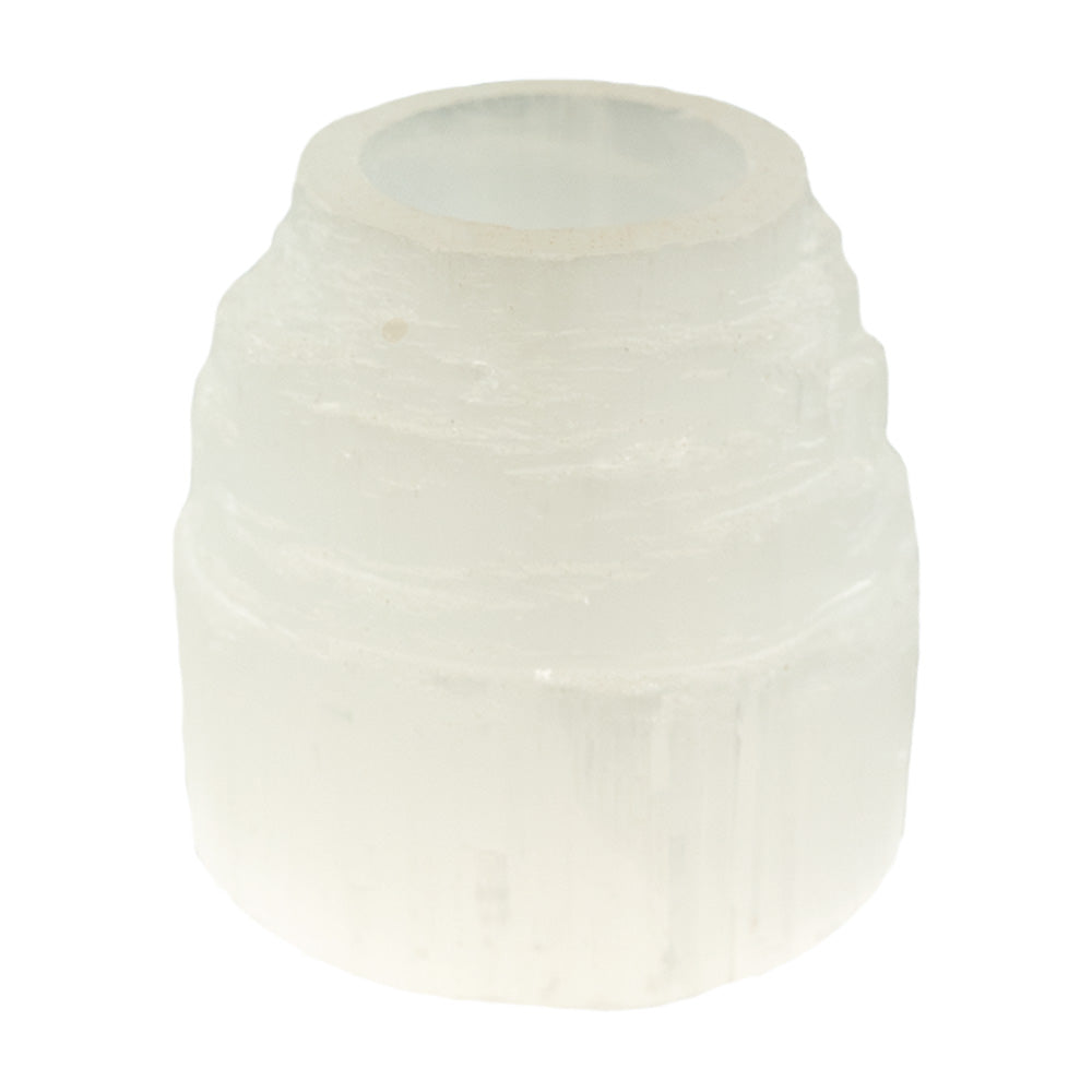 Selenite is comprised of calcium sulfate dehydrate, it's a mineral that can be found in, Brazil, Mexico, Greece, Japan, Poland and the USA. Named after the Greek Goddess of the Moon this stone is often compared to the luster and grace that a goddess would possess. Put a candle in this holder, set it down and crack open your favorite book.