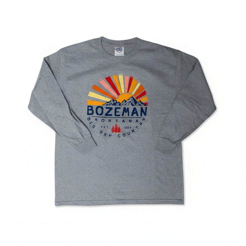 Youth Athletic Grey Circling Mountain Tree Montana Long Sleeve Shirt by Prairie Mountain (2 sizes)