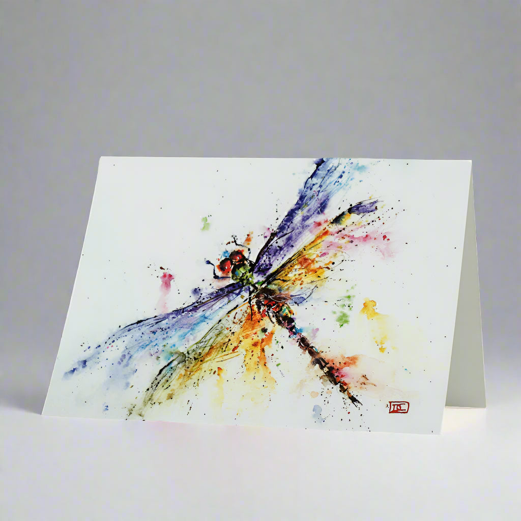 Capture the tranquil beauty of nature with the Pond Dragonfly Watercolor Greeting Card by Dean Crouser! This card features a graceful dragonfly hovering over the still waters of a pond, painted in Dean Crouser’s signature watercolor style. The delicate wings of the dragonfly shimmer in soft blues and greens, while subtle brushstrokes evoke the calm serenity of a peaceful pond. Whether you’re sending a thank-you note, a birthday wish, or just a note to brighten someone’s day, this card is sure to add a touch of elegance and peace to any occasion.
