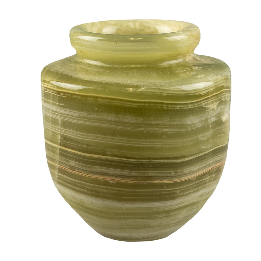 Onyx is a mineral that has many beneficial traits for health and wellness as well for good luck. Some of the the things that onyx help with are relieving stress, curing sleeping disorders, strengthening your heart and helping with eye ailments! So it's a pretty versatile mineral that you can just have in your home. Set it on your desk while you're working to help release stress, put it next to your night stand to help you sleep at night or put in your living room as a nice decorative vase. These vases are also a perfect gift for anyone you are thinking of that could use a little pick me up in their life.