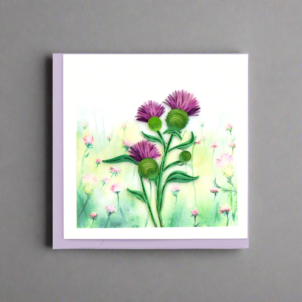 Greeting cards offer a special way to share meaningful sentiments, and the Thistle Floral Square Greeting Card by Quilling Card is no exception. Featuring the intricate beauty of a handcrafted quilled thistle, this design captures the rugged elegance of this iconic flower. Symbolizing strength, resilience, and protection, the thistle makes this card a perfect way to honor and encourage the important people in your life.