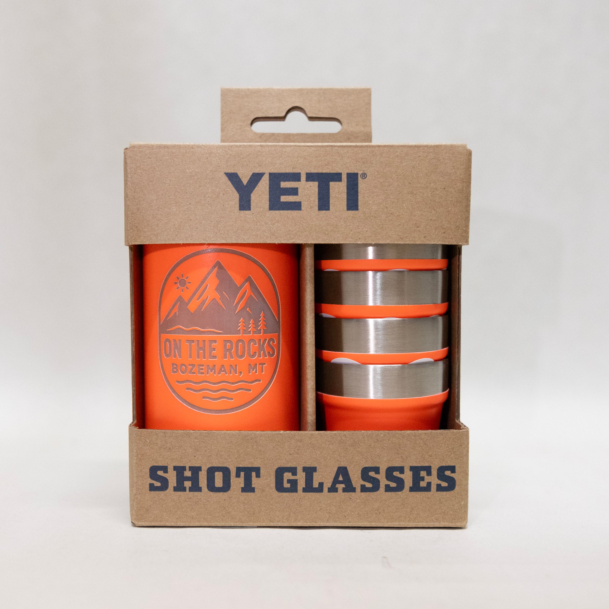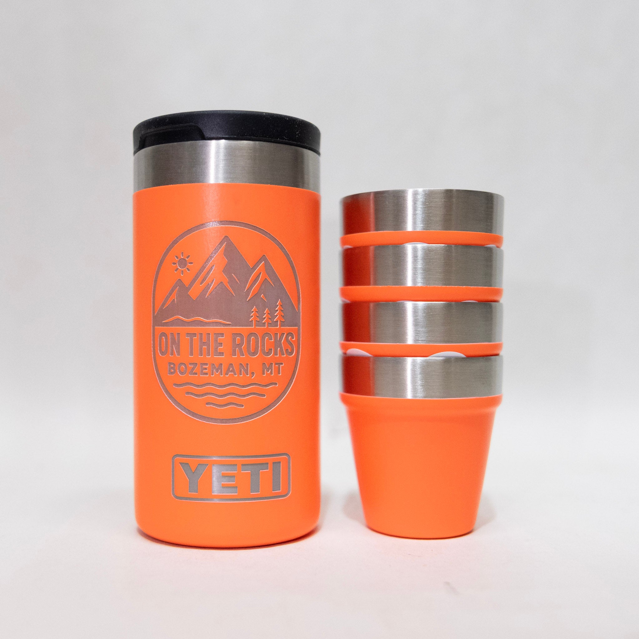 On the Rocks Bozeman Engraved YETI Shot Glasses and Carrying Case by Montana Gift Corral