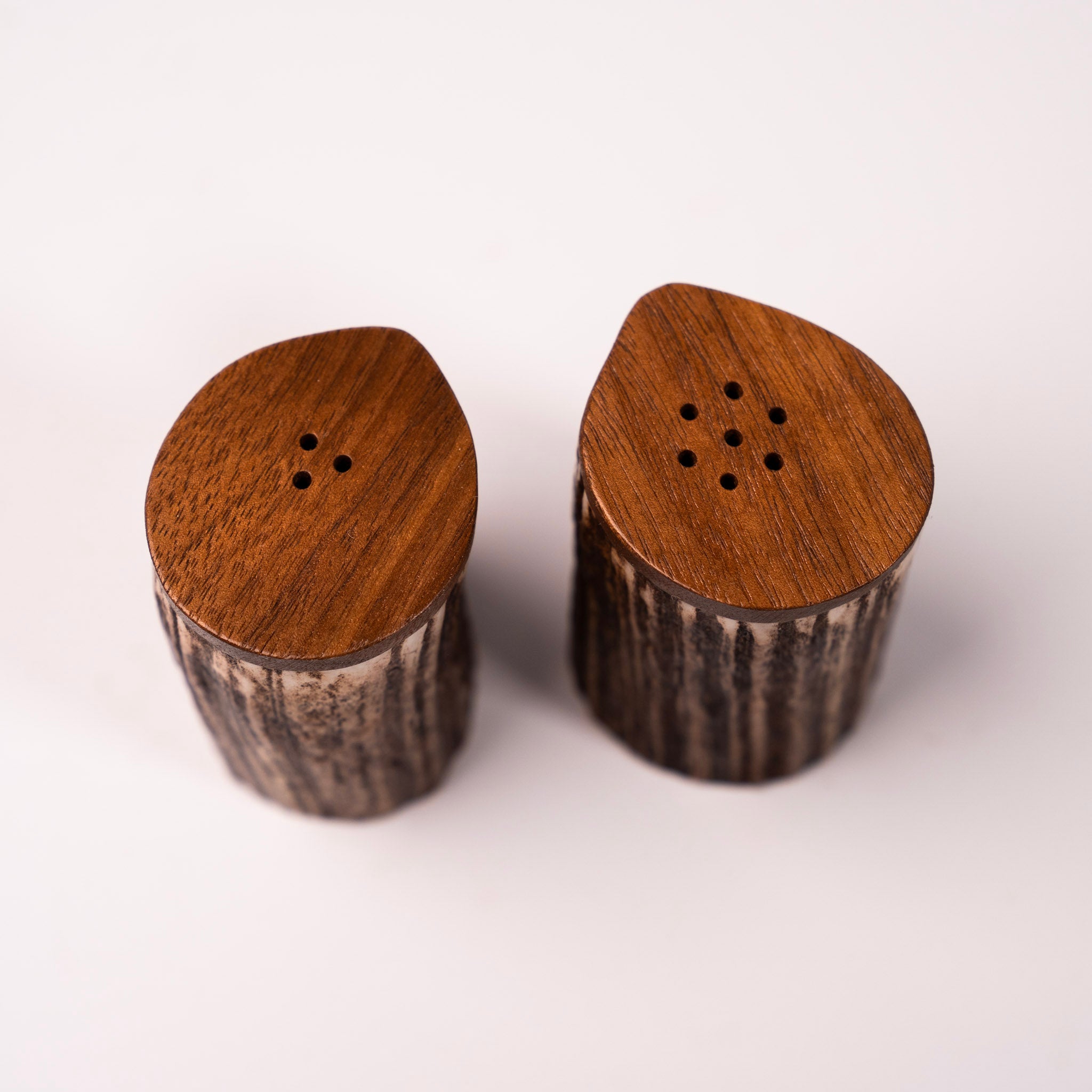 - Note: Each set of salt and pepper shakers is crafted using naturally shed antlers and is completely one-of-a-kind. While these photos are a great representation of the item, we cannot guarantee that you'll get this exact set. Coloring is unique to each set!