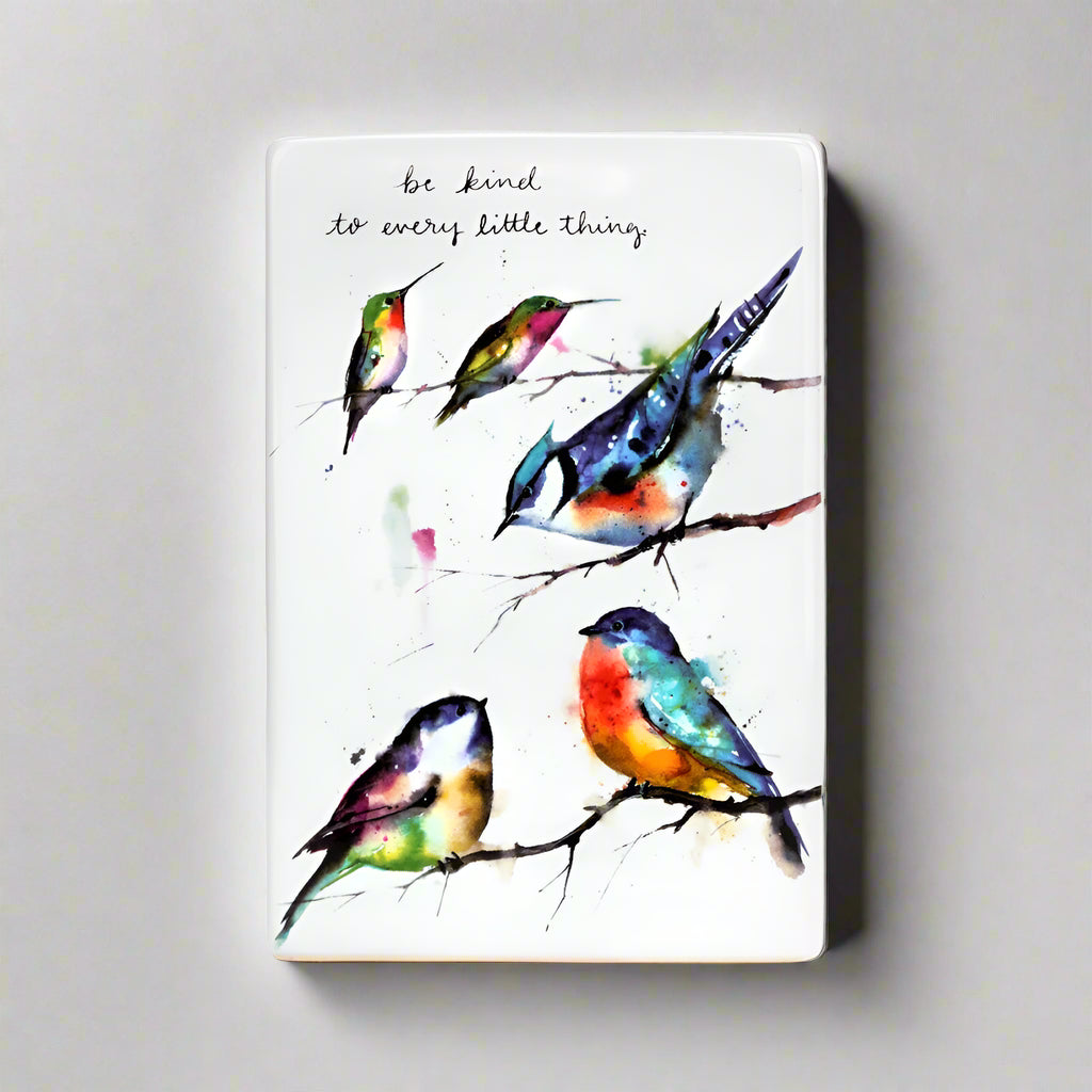 Dean Crouser is well-known for this vibrant, nature-inspired watercolor artwork. Dean Crouser says that his "adventurous childhood fostered a love of the great outdoors." This passion for the outdoors heavily influences his art that typically features a variety of wildlife and/or foliage. His message here to be kind emphasizes kindness for all, even the smallest of creatures. Whether you share a similar passion for nature or are just looking to liven up your space, get your hands on the Dean Crouser The Get Together Vertical Plaque by Demdaco!