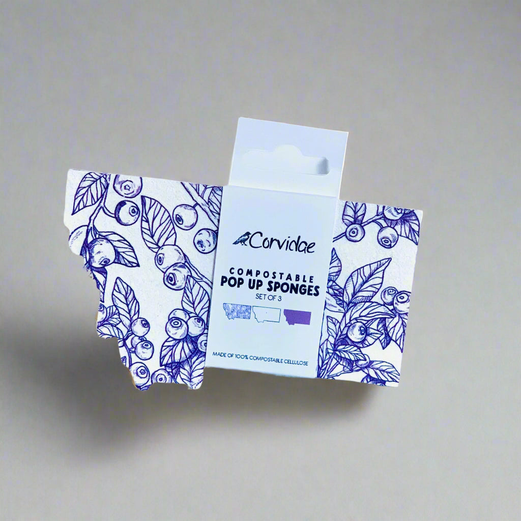 Huckleberry Montana Shaped Compostable Pop Up Sponges by Corvidae Drawings and Designs