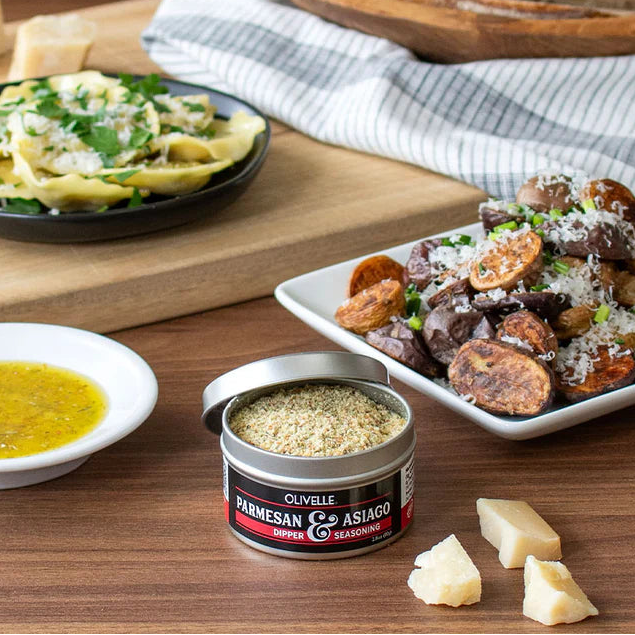 So you've just finished cooking a meal that you've been looking forward to all week, but it's just missing something. We've all been there! If you need that rich, cheesy flavor, make sure to reach for your Parmesan Asiago Dipper by Olivelle. Made with the perfect blend of Italian cheese, onion, carrot, garlic, celery, sea salt, cane sugar, extra virgin olive oil, oregano, and rosemary, this Montana-made seasoning will instantly elevate any dish it touches! Plus, it just might be one of the most versatile items in your pantry. Just mix with olive oil for a quick bread dipper, stir into sauces, sprinkle over pasta or veggies, rub on meats, toss with popcorn, or blend with butter for a savory spread! Trust us, you'll want to get your hands on the Parmesan Asiago Dipper by Olivelle.