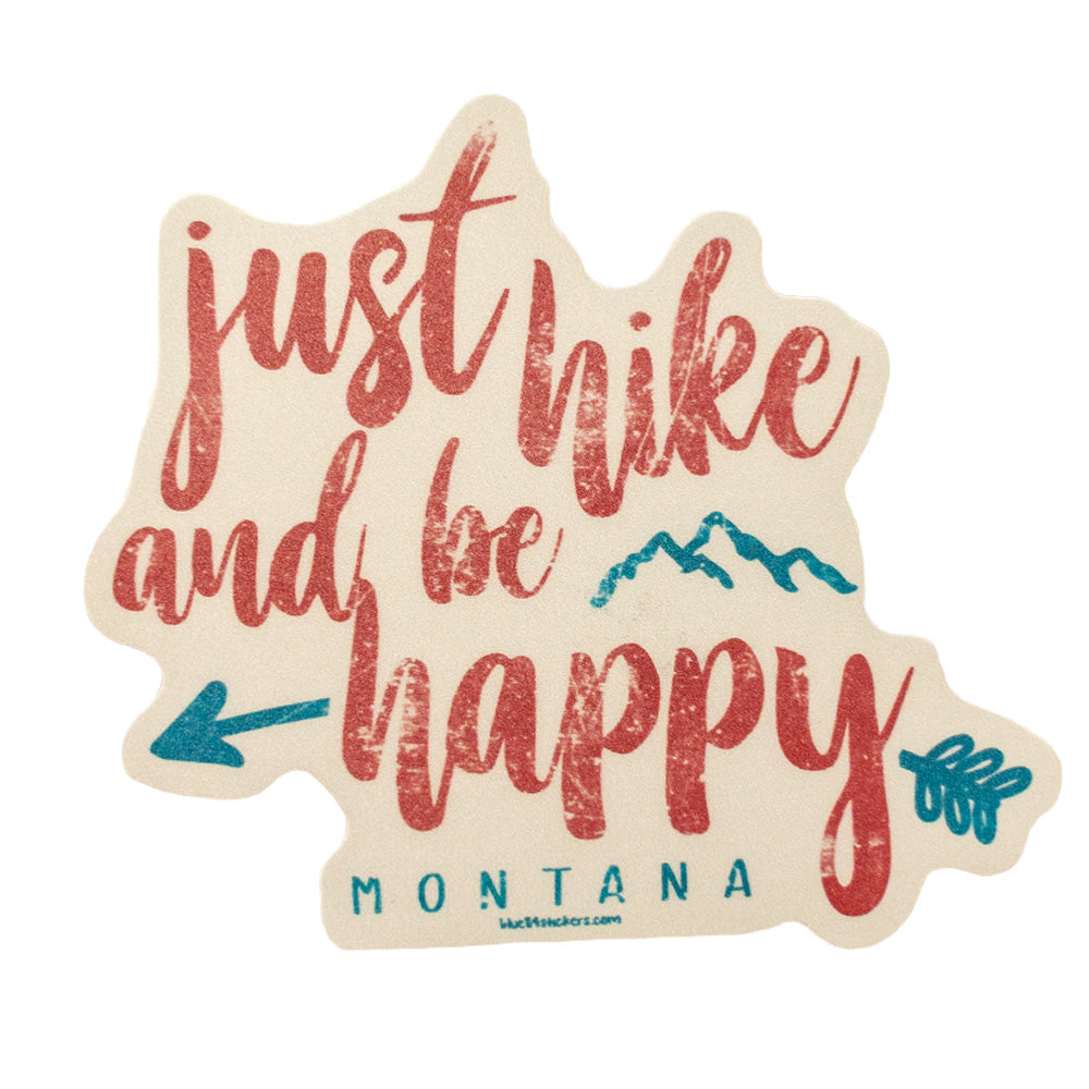 The sticker says it all. Especially when you live in a place like Montana, it's just a perfect place to be in the mountains on the trails. You can always remind yourself how to be happy with this sticker, slap it on your water bottle, your car bumper, on your window or anywhere you want! This sticker will last for a long time, and it will show off your love for Montana and hiking.