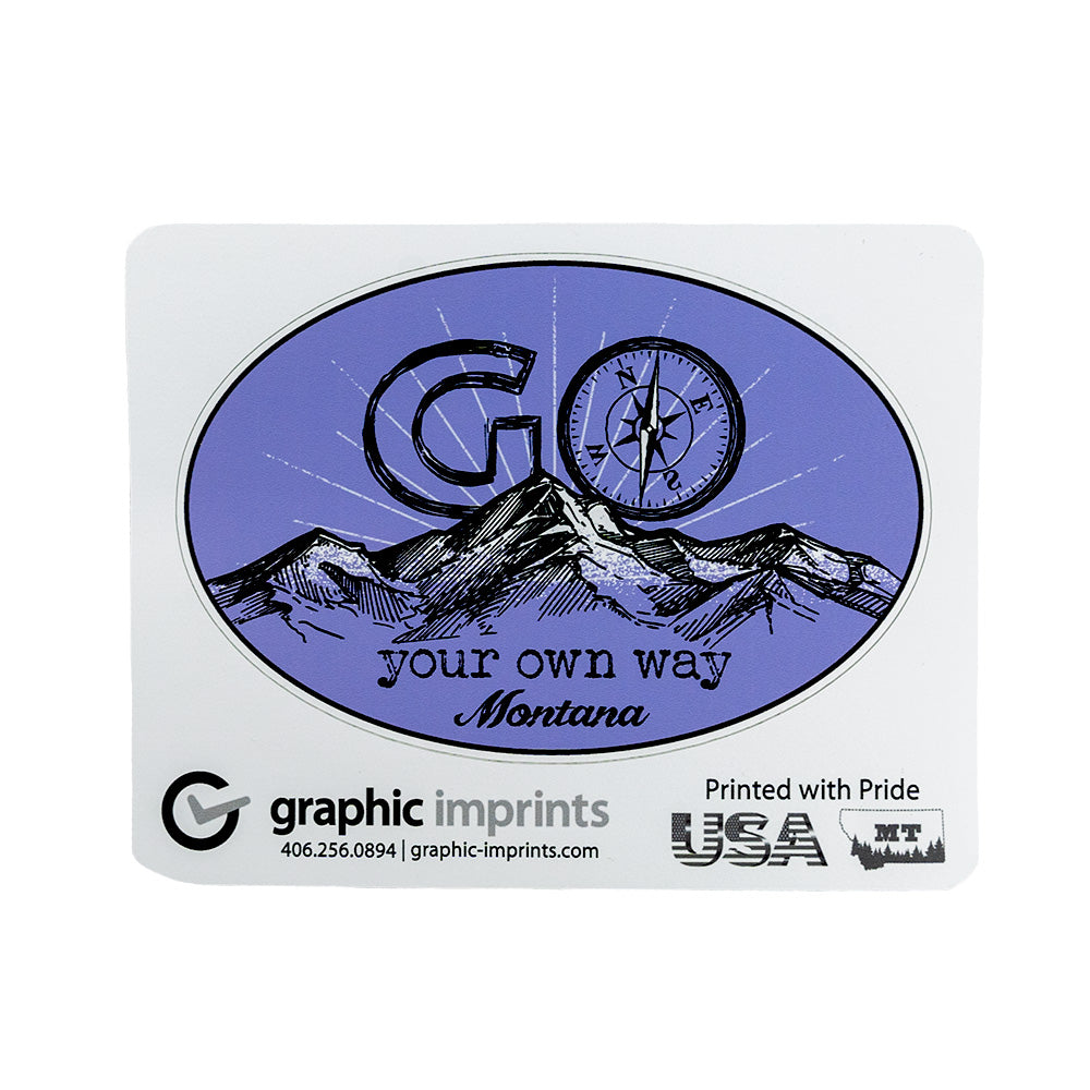 Stickers are a great way to remember an amazing trip or experience. The best part about stickers is you can put them anywhere. So, if you have space that needs filling, an empty water bottle that needs personality, even a car bumper in need of some flare, we've got you covered! With the Montana Compass Mountains Sticker by Graphic Imprints, you can really let your Montana experience shine. It features the slogan "Go your own way," which is a great way to express the freedom Montana provides.