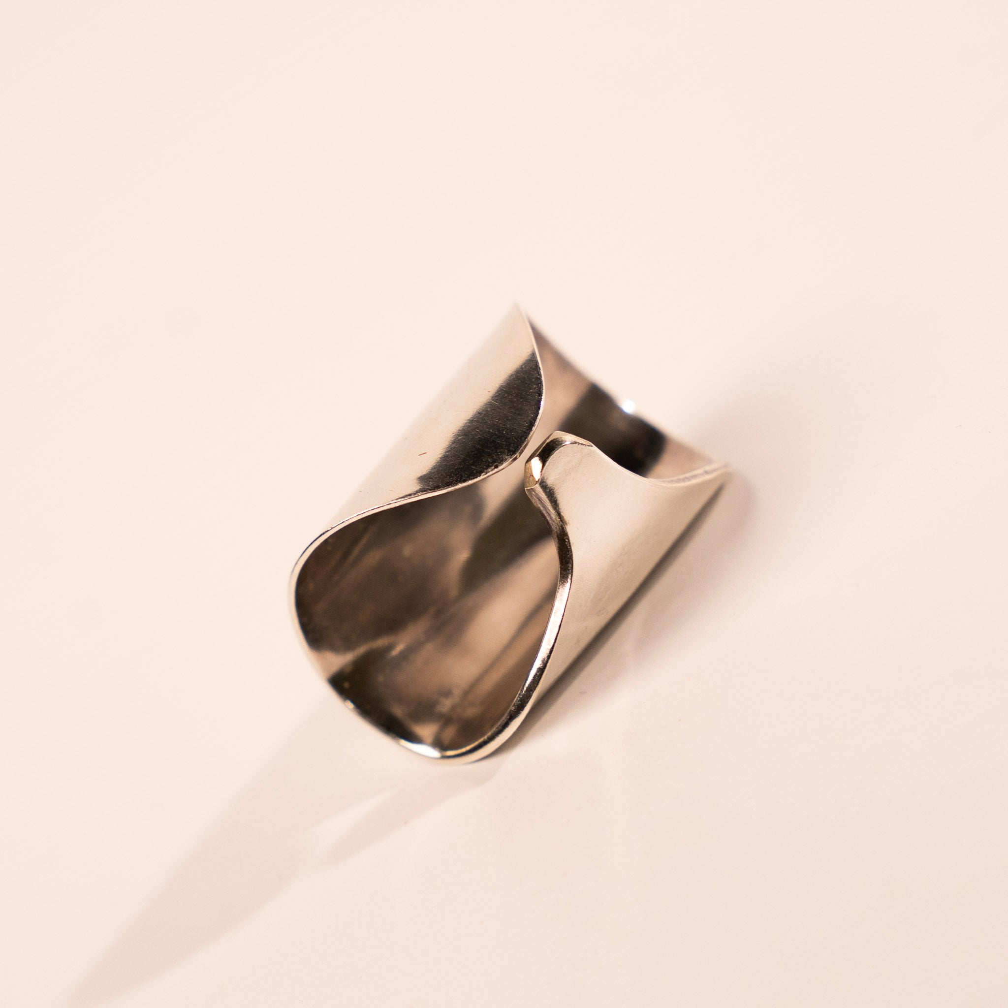 Sometimes a dainty ring just won't do. If you woke up this morning and thought "Gosh, I really need a statement ring" then you've come to the right place! Upcycled by Girl Ran Away with the Spoon from an antique sterling silver plated iced teaspoon bowl that has been hammered and shaped, our Spoon Bowl Ring is beautifully designed. What makes these pieces so special is that they are totally one-of-a-kind. Each piece will have its own unique details and quirks that add to its individual Montana-made charm. You can dress these rings up if you're heading off to an event that requires a fancier outfit, or even dress them down for day-to-day activities like running errands. The choice is yours! Embrace your individuality with our stunning Spoon Bowl Ring by Girl Ran Away with the Spoon.