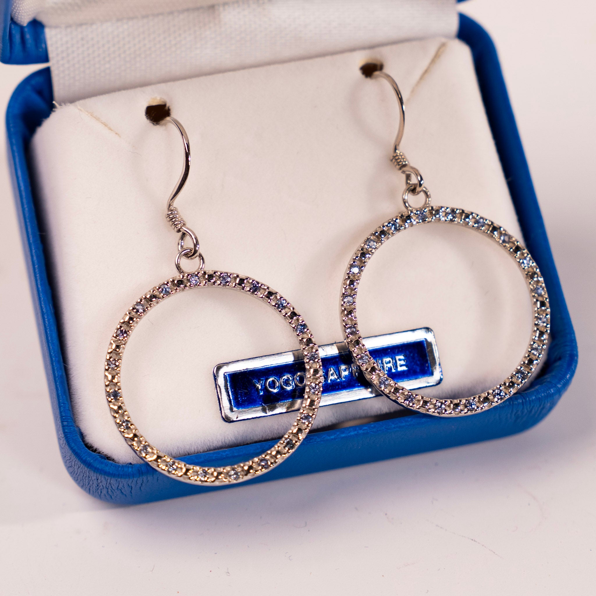 In search of a special, one-of-a-kind keepsake from Montana? Our Yogo Sapphire Hoop Earrings by Mac's Gems are the perfect choice! These dazzling earrings include 40 gorgeous 1.5mm Montana Yogo Sapphires in their natural, unheated, untreated state from the Yogo Gulch in the Big Sky State! There’s just something magical about Yogo sapphires, their dreamy blue color, the way they sparkle without needing any treatment, and the fact that you can only find them right here in Montana. It’s like holding a little piece of the Treasure State in your hand! At about 1.5" from the ear wire's peak, these earrings come complete with a blue clamshell box. They would make a fabulous addition to your jewelry collection, or a sweet Montana memento for a loved one. Snag your pair today before they're gone, our stock is limited!