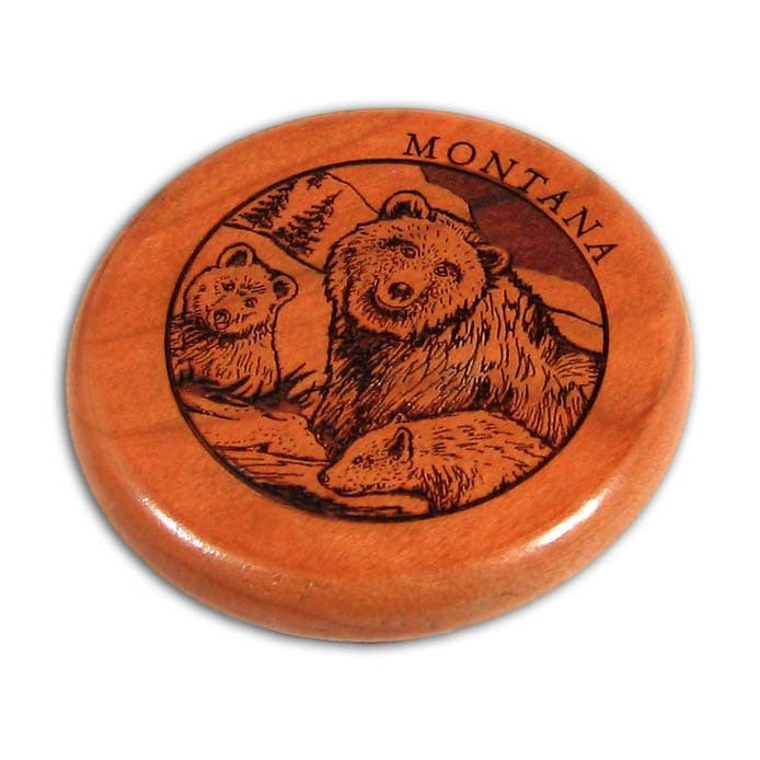 The unique company responsible for this wildlife-inspired design, Wayne Carver Woodworking, is a company based out of Rockford, Illinois! Know for its distinctive work in custom laser engraved goodies, Wayne Carver is a pro at offering products that help individuals remember their fondest memories. Whether you are simply traveling through the state, or are a Montana local, you totally need to get your hands on the Round Grizzly Magnet by Wayne Carver Woodworking!