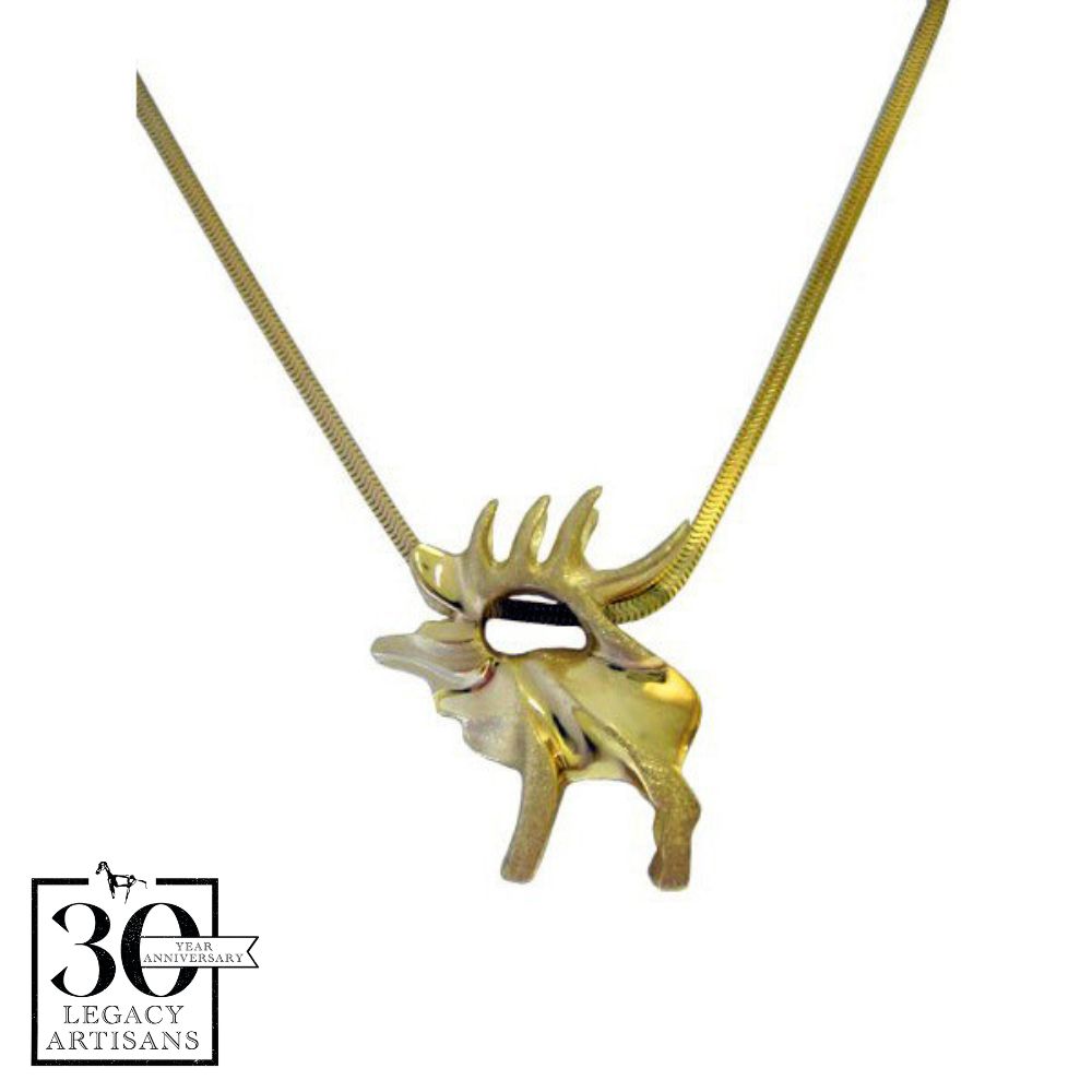 Designed and handcrafted by renowned wildlife and horse jeweler, Sam Ferraro, this gold elk, pendant necklace is made right here in Montana. We love offering fine artist Sam Ferraro's work because of the high-quality craftsmanship and material. Fill your jewelry collection with high-quality jewelry, made to last.