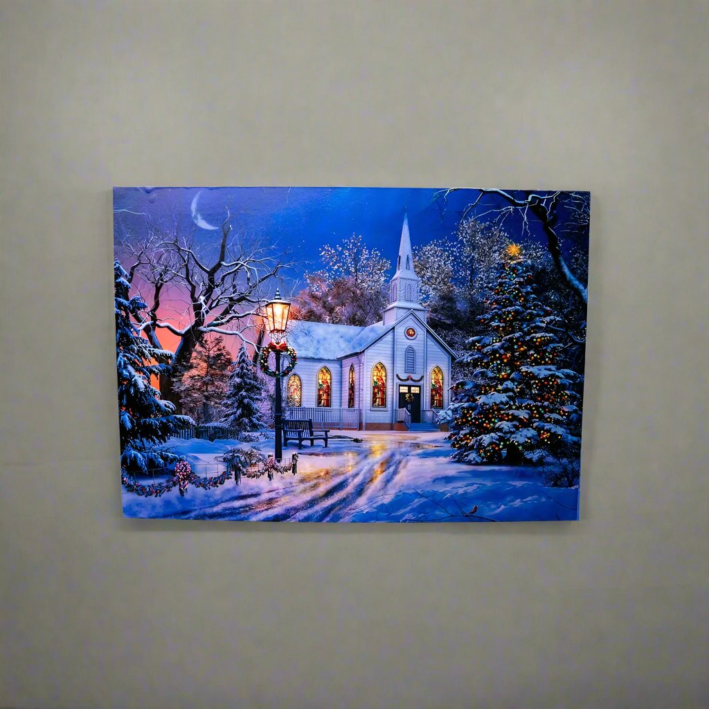 Lighted Church with Lamp Lit Art by Oak Street Wholesale
