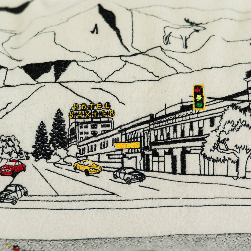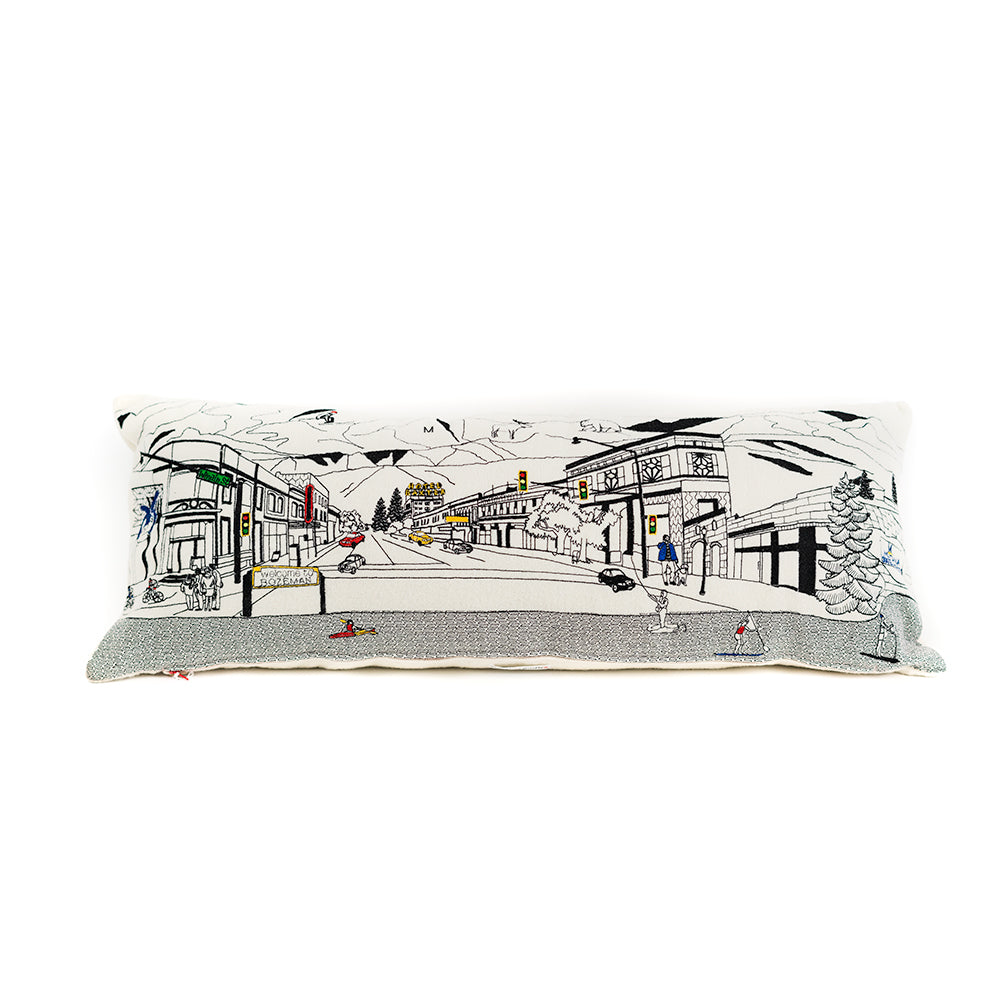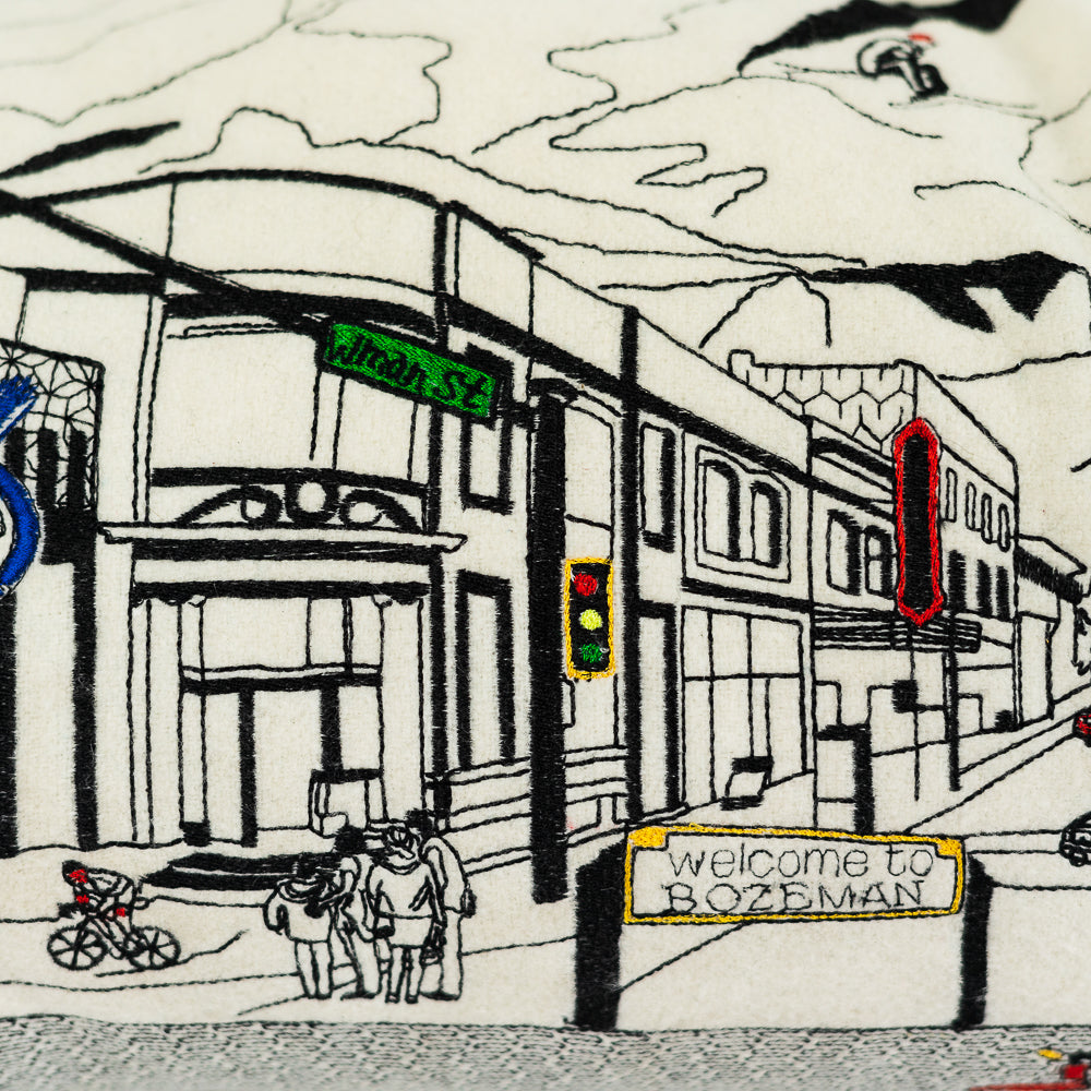 Fill your home with what you love. Beyond Cushions has crafted this embroidered accent pillow to let you hold Bozeman tight. Whether this pillow is lucky enough to live just a few blocks from storefronts depicted or far far away, this will certainly bring you joy. Throughout the design are fun details of everything Bozeman stands for and everything we love about calling this place home: fly fishing, skiing, wildlife, getting on the river, biking. The splashes of color pop against the black and white embroidery make this a fun and sophisticated piece you'll be proud to own.