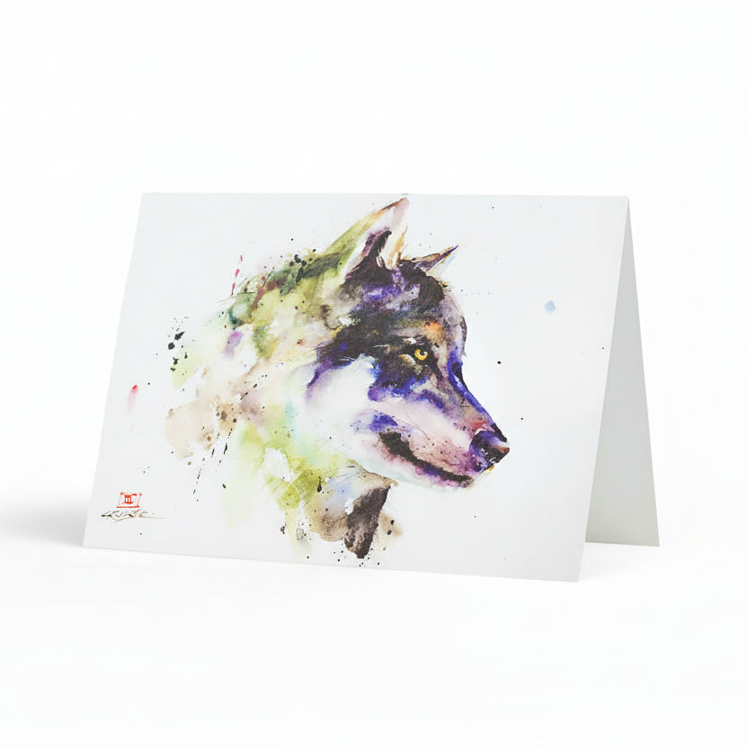 Sentry Wolf Watercolor Greeting Cards by Dean Crouser