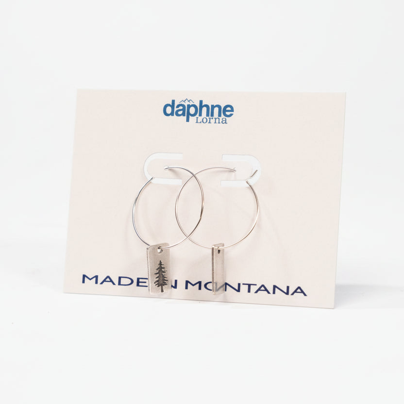 Did you know that spruce trees often symbolize hope and resilience? Able to not only survive, but thrive, in many different environmental conditions, these trees are highly adaptable. If you are looking for a sentimental keepsake that will remind you or a loved one of inner strength, make sure to check out our Silver Spruce Earrings by Daphne Lorna. Handmade here in Montana, these earrings have been crafted in sterling silver, making them nickel, lead, and cadmium free. These charming dangle earrings feature a simple hoop with a rectangular charm engraved with a spruce tree. They are classic, stylish, and perfect for any outfit! Whether you are picking up this pair for yourself, or are looking for the perfect Montana gift, the Silver Spruce Earrings by Daphne Lorna fit the bill perfectly.