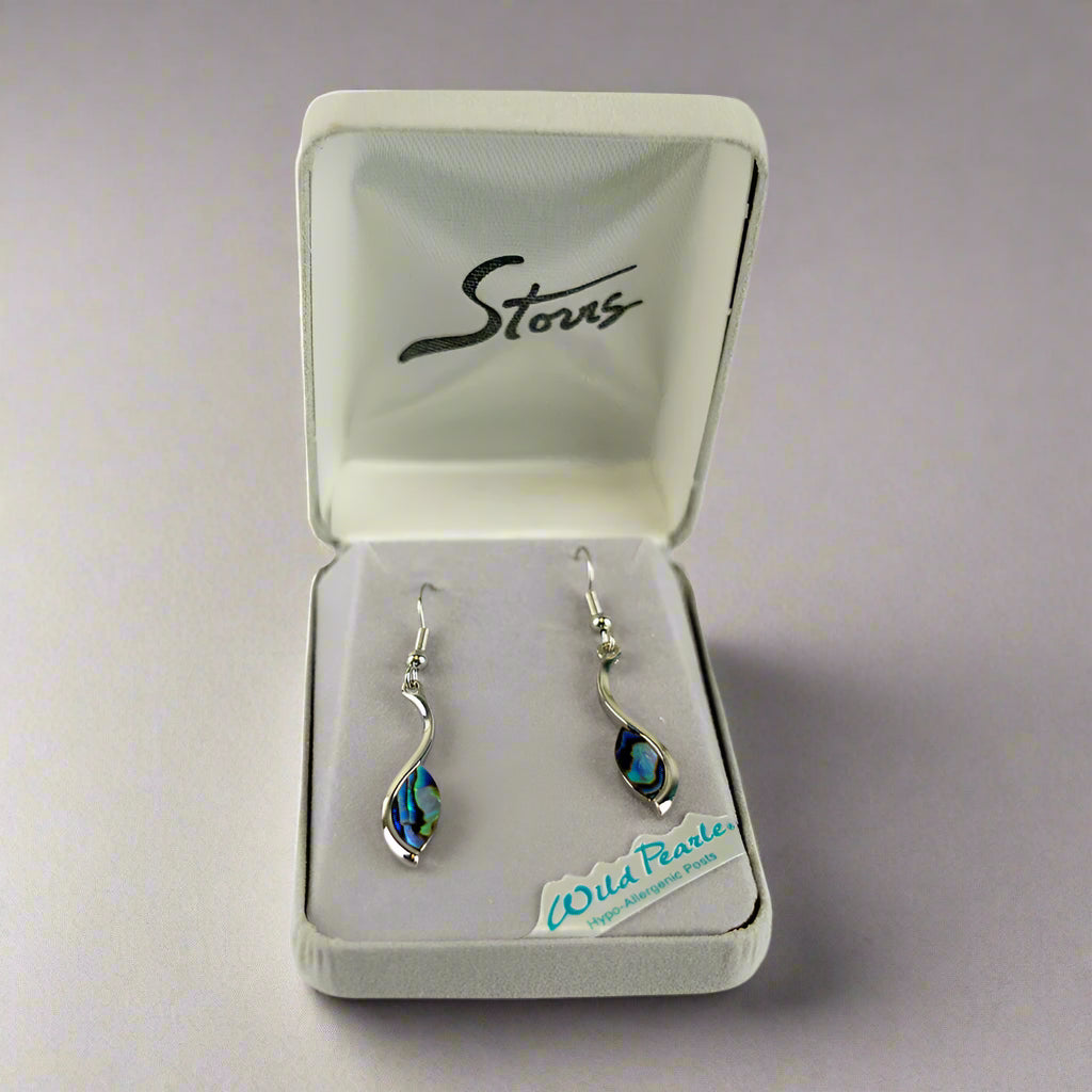 Bring the peaceful rhythm of nature to your style with the Wilde Pearle Flowing Waters Earrings by A.T. Storrs! These stunning earrings feature a flowing, wave-like design, accented with shimmering abalone shell that makes each pair completely unique. The natural variations in the shell ensure every piece has its own character. Lightweight and hypo-allergenic, they’re comfortable enough for everyday wear and come in a sleek gray gift box—perfect for gifting or keeping as your personal reminder of nature’s calming beauty.